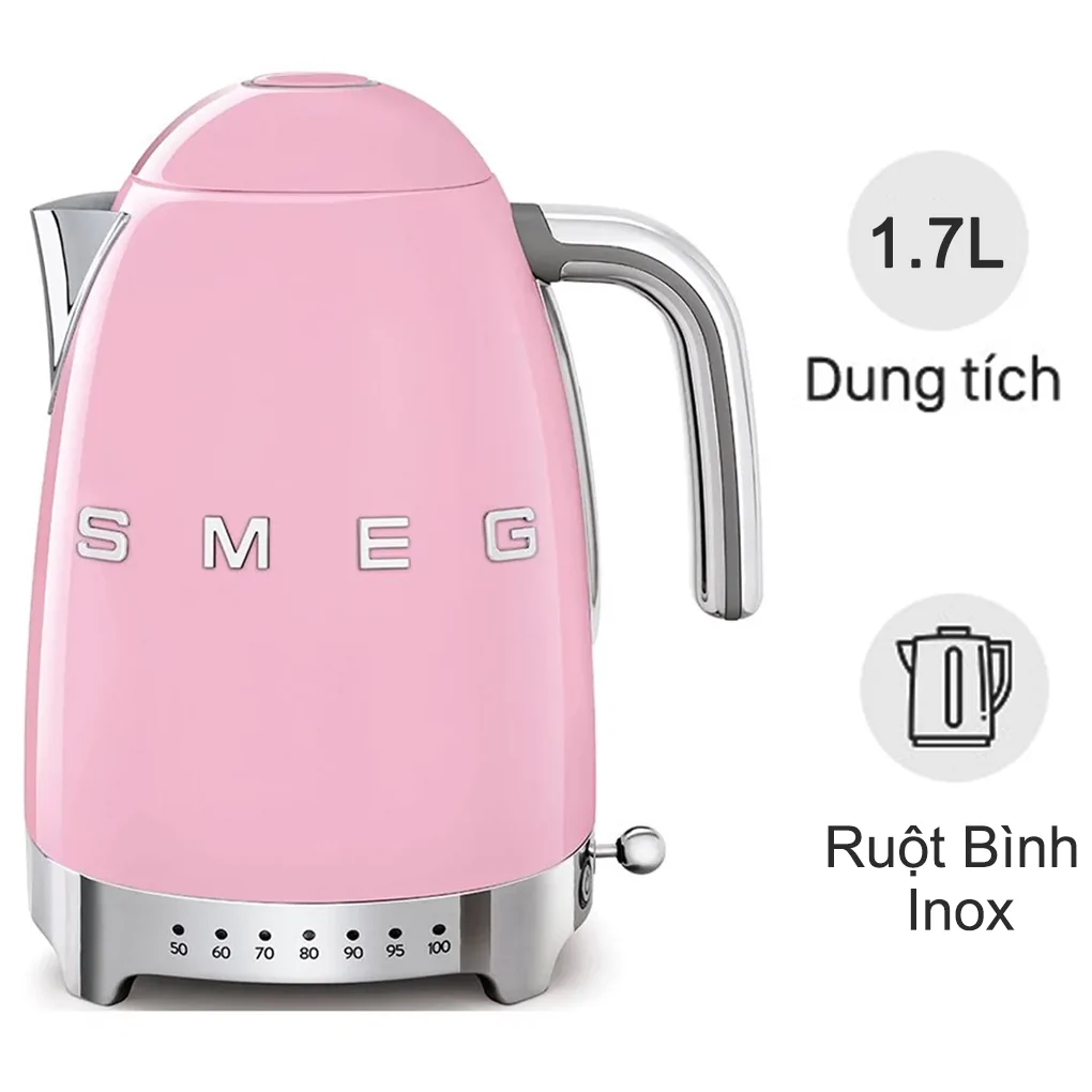 Ấm Đun Chỉnh Nhiệt Độ Smeg Hồng KLF04PKEU (535.44.046) là sự lựa chọn hoàn hảo cho những người yêu thích phong cách retro. Với công suất 3000W, ấm đun nước sẽ giúp bạn có ngay một bình nước sôi chỉ trong vài phút. 7 mức nhiệt độ từ 50°C đến 100°C cho phép bạn chọn nhiệt độ phù hợp với từng loại đồ uống. Chức năng tự ngắt điện khi phát hiện trong ấm không có nước giúp bạn yên tâm sử dụng mà không lo bị quá nhiệt.