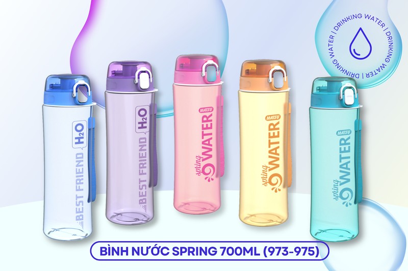 Bình nước Spring 700ml của Duy Tân nổi bật với thiết kế chắc chắn và đa dạng 5 màu sắc, phù hợp với sở thích của mọi người