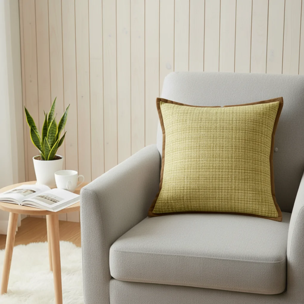 Sự kết hợp giữa họa tiết kẻ ô cổ điển, chất liệu dệt ấm áp và đường viền sắc nét là những yếu tố khiến chiếc gối này trở nên đặc biệt và thu hút.