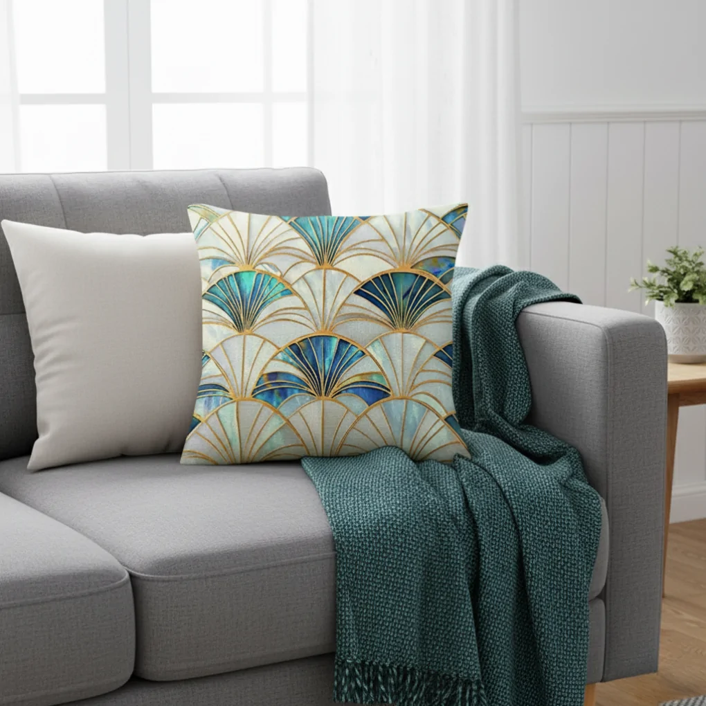 Chiếc gối tựa lưng độc đáo, kết hợp phong cách thiên nhiên và nghệ thuật trừu tượng, hoàn hảo để tạo điểm nhấn hiện đại và cá tính cho không gian sống.