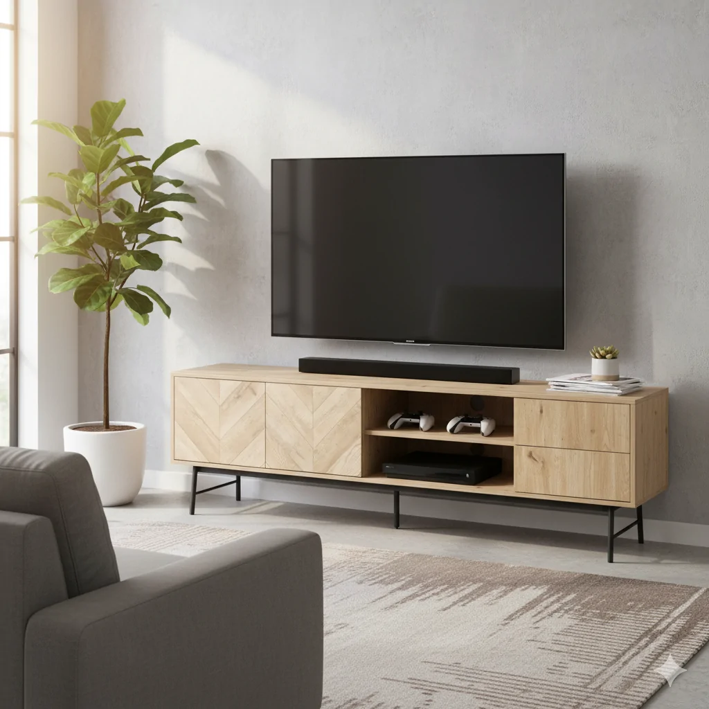 Được chế tác từ chất liệu gỗ cao cấp, đảm bảo độ bền vượt thời gian và khả năng chịu tải tốt, an toàn tuyệt đối cho chiếc TV và các thiết bị điện tử giá trị của bạn.