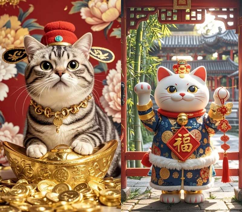 Hình nền mèo thần tài mang nhiều phong cách khác nhau