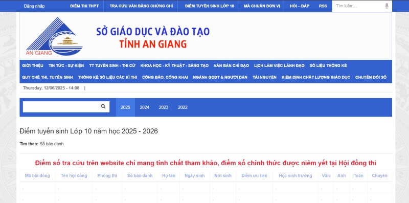 Hướng dẫn tra cứu điểm thi tuyển sinh lớp 10 An Giang