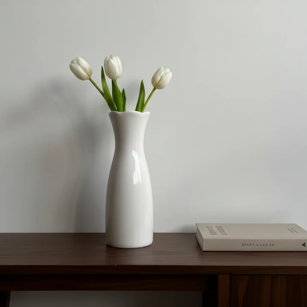 Bình có hình dáng hiện đại và tối giản dùng để cắm hoa trang trí hoặc dùng làm vật phẩm trang trí đơn lẻ cho không gian sống.