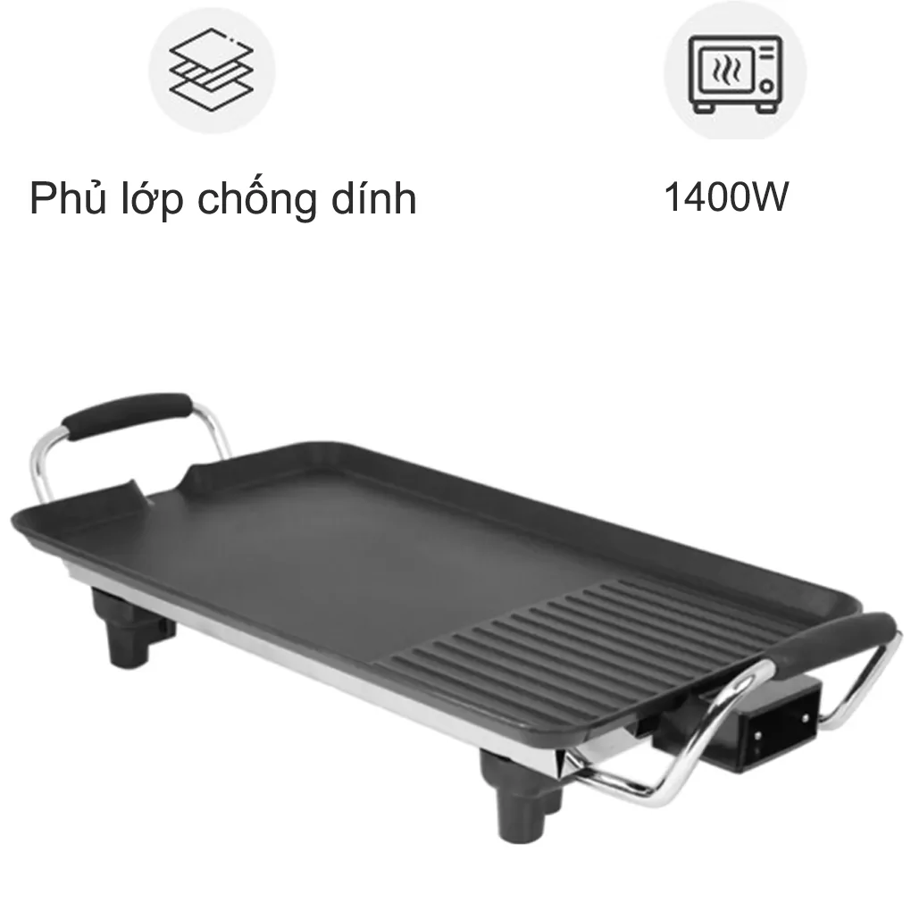 Sản phẩm hoạt động với công suất 1400W, điện áp 220V - 50Hz. Bếp nướng truyền nhiệt nhanh giúp thức ăn nhanh chín, tiết kiệm tối ưu thời gian và nhiên liệu nấu nướng.