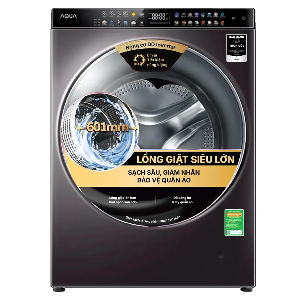 Lồng giặt được mở rộng lên đến 601mm nâng cao hiệu quả giặt giũ đáng kinh ngạc. Khối lượng giặt lên đến 15kg và sấy là 10kg trên chiếc máy giặt AQUA cửa ngang này đáp ứng tốt nhu cầu sử dụng cho gia đình có trên 7 thành viên hay không có quá nhiều thời gian phải dồn quần áo để giặt một lần. Đồng thời, tính năng sấy tiện ích còn giúp làm khô quần áo trong những ngày trời mưa ẩm ướt và tiết kiệm không gian diện tích.