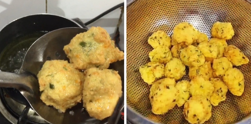 Chiên giả vàng giòn hai mặt thì vớt ra