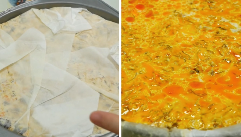 Chuẩn bị khuôn hấp, có thể lót một lớp màng bọc thực phẩm hoặc thoa một lớp dầu mỏng để chống dính.
