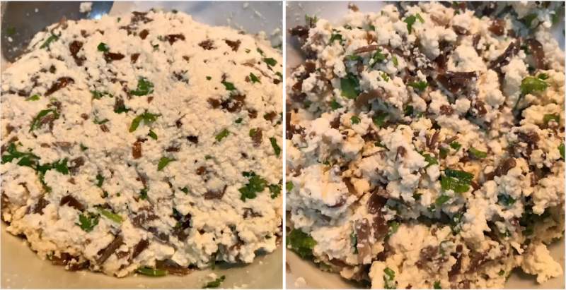 Nghiền nhuyễn đậu hũ và trộn với các nguyên liệu