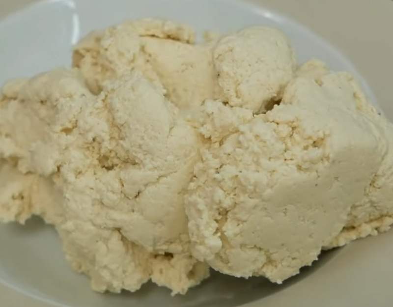 Đậu hũ sau khi ép đem đi xay nhuyễn với mì căn