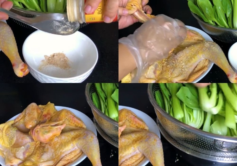 Để rút ngắn công đoạn chuẩn bị, bạn có thể nhờ người bán làm sạch lông gà ngay tại chợ. Về nhà, chỉ cần dùng muối hoặc chanh xát đều khắp thân gà để loại bỏ mùi tanh, rồi rửa lại với nước cho thật sạch và để ráo trước khi chế biến.