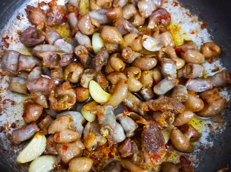 Chiên lòng heo với hỗn hợp tỏi ớt