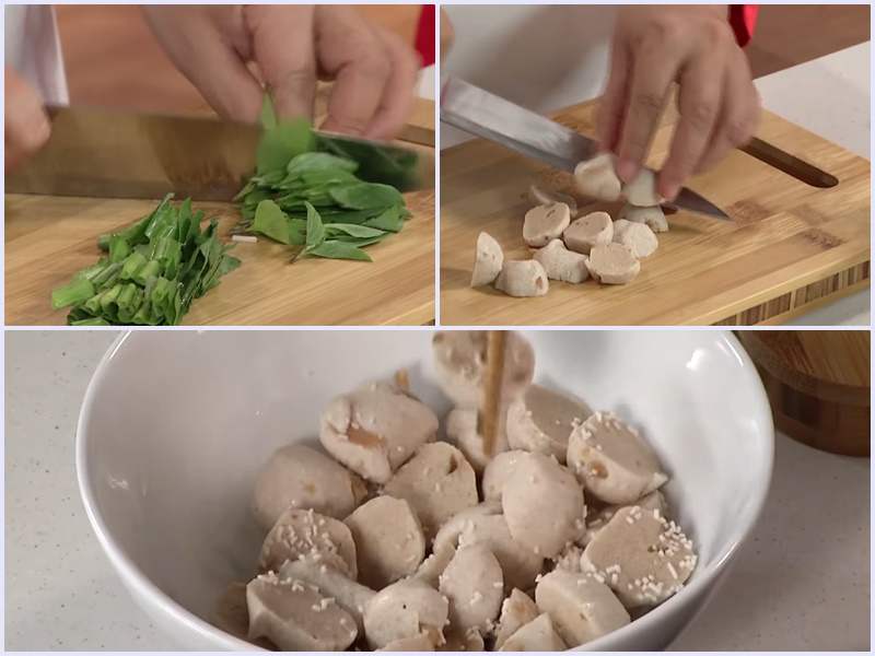 Sơ chế rau thơm và cá viên chay