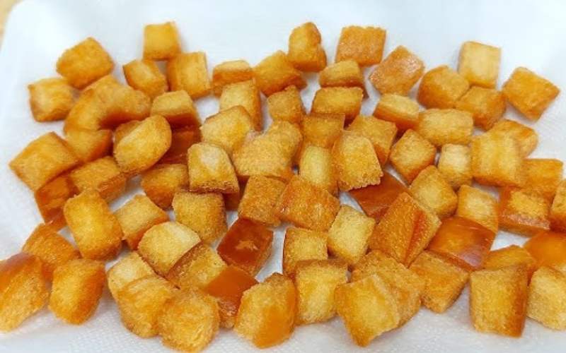 Chiên tóp mỡ chay từ bánh mì sandwich