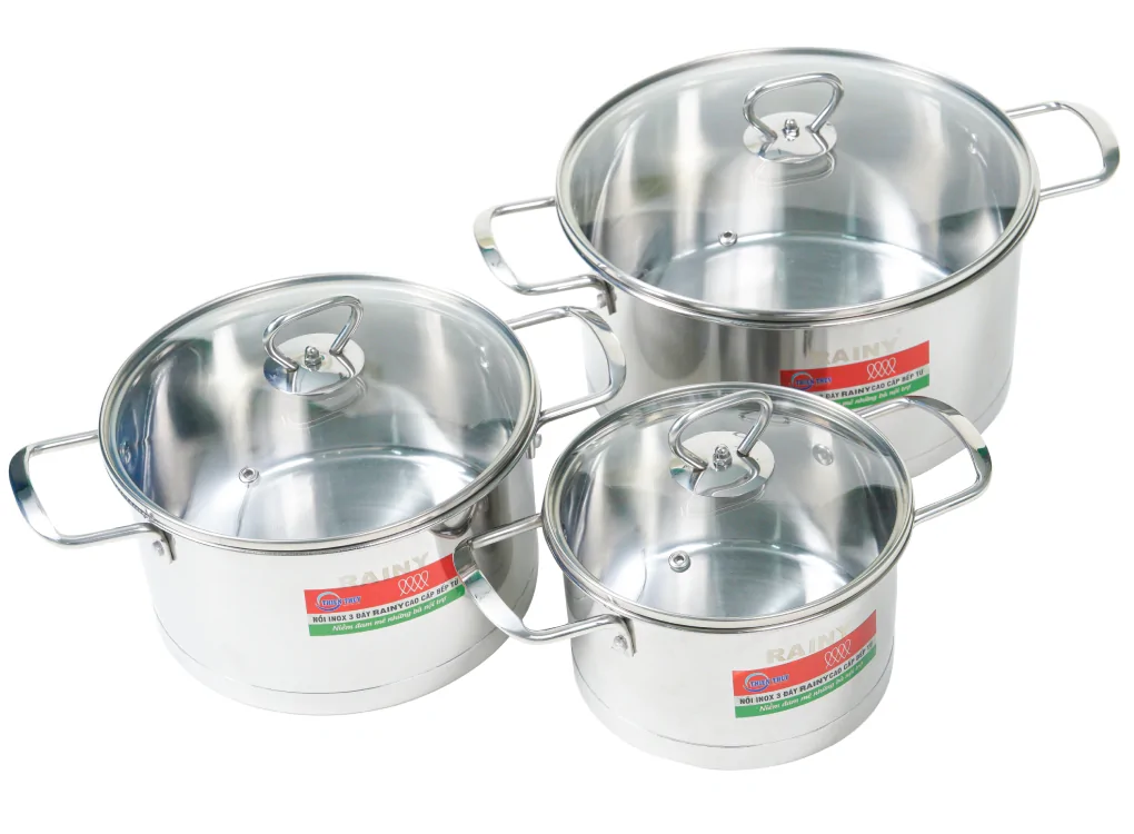 Để có thêm nhiều sự lựa chọn, bạn có thể tham khảo sản phẩm Bộ 3 nồi Inox 1 đáy Rainy RN06TTY được sản xuất tại Việt Nam với chất lượng tốt, phù hợp cho nhu cầu nấu ăn hàng ngày.