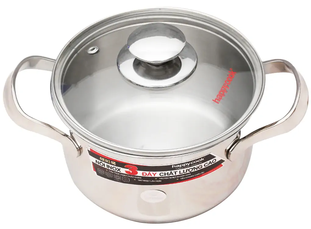 Nồi inox cao cấp 3 đáy nắp kính 16cm
