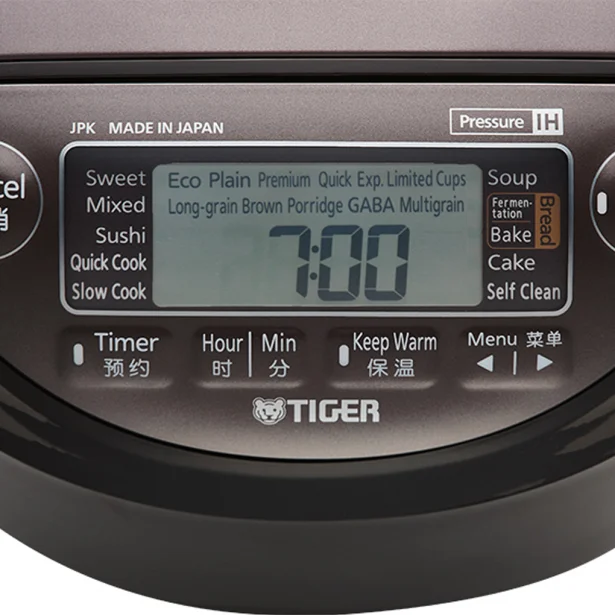 Nồi cơm điện tử cao tần áp suất Tiger JPK-W10W-T trang bị bảng điều khiển trực quan, bố trí ở mặt trên của nồi. Bộ phận điều khiển có các nút nhấn điện tử và màn hình hiển thị giúp bạn dễ quan sát, chọn chế độ nấu,...