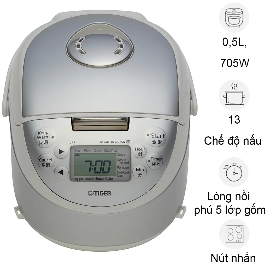 Nồi cơm điện tử cao tần Tiger JPF-A55W 0.5 Lít, Màu Xám