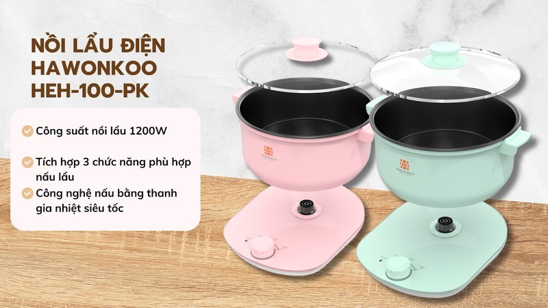 Tham khảo Hawonkoo HEH-100-PK - Mẫu nồi lẩu điện đa năng với các chế độ đun nấu nhanh (High), giữ nóng (Low), và đặc biệt là khả năng chống cạn, chống cháy