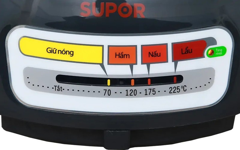 Nồi lẩu điện giá rẻ Supor HFK26EVN-130 1300W được trang bị bảng điều khiển nhiệt độ dễ sử dụng với nút gạt, giúp bạn dễ dàng điều chỉnh mức nhiệt phù hợp cho các món ăn