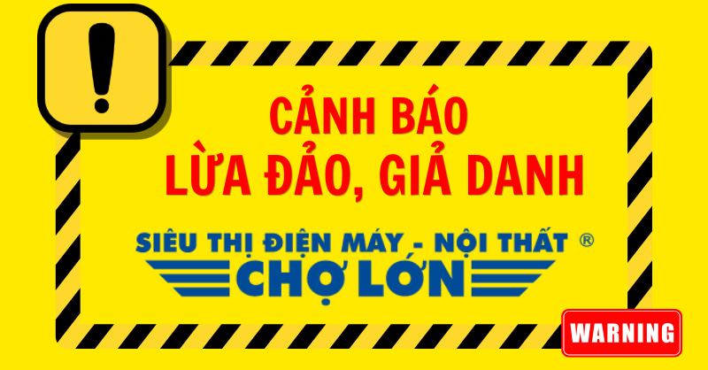 Siêu Thị Điện Máy - Nội Thất Chợ Lớn (Điện Máy Chợ Lớn) là thương hiệu uy tín, được đông đảo người tiêu dùng tin tưởng. Tuy nhiên, thời gian gần đây, chúng tôi ghi nhận tình trạng một số cá nhân/tổ chức lợi dụng tên của tuổi thương hiệu để thực hiện các hành vi giả mạo.