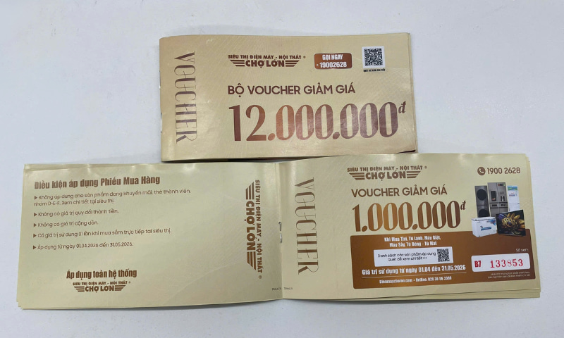 - Có mã QR xác thực: Mỗi phiếu đều được in mã QR xác thực, khi quét sẽ chuyển trực tiếp đến trang thông tin khuyến mãi “Bộ Voucher giảm giá - Điện Máy Chợ Lớn”
