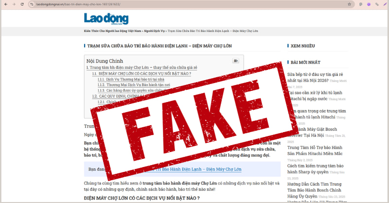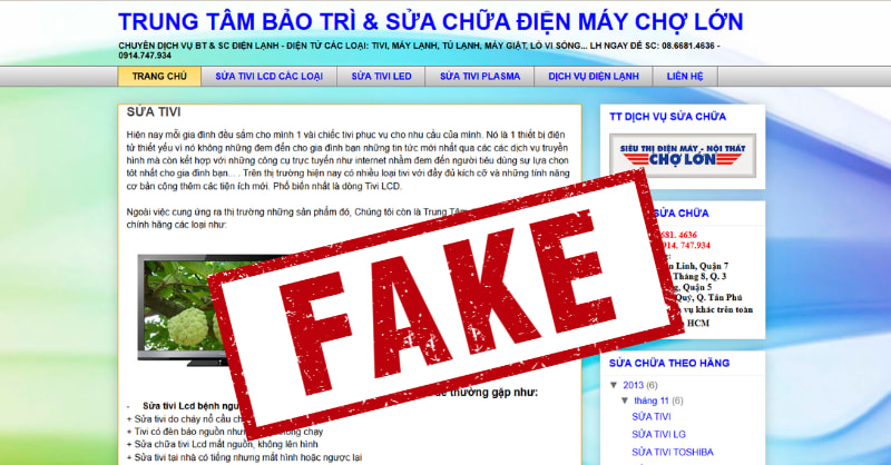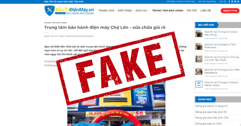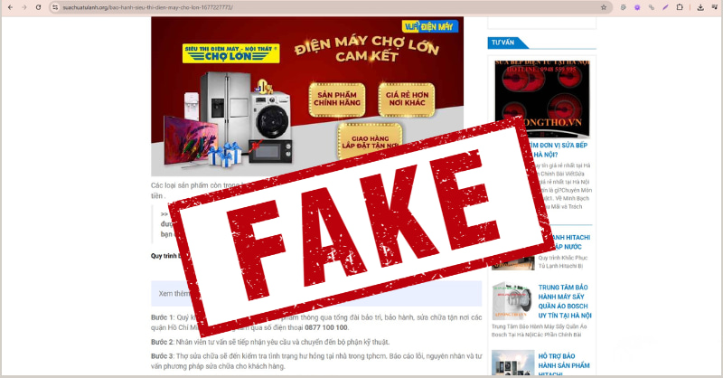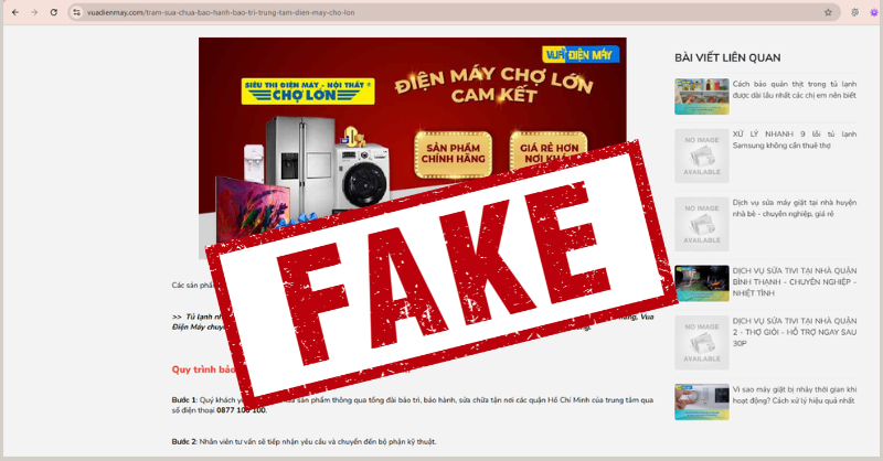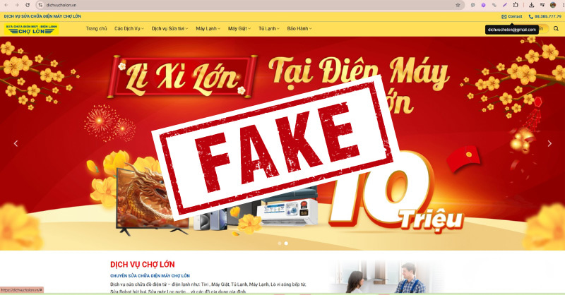 Cụ thể, các đối tượng đã thiết lập nhiều website sử dụng tên gọi, hình ảnh, logo tương tự nhằm giả danh Điện Máy Chợ Lớn để cung cấp dịch vụ sửa chữa, vệ sinh, bảo dưỡng thiết bị điện tử, điện lạnh,... gây nhầm lẫn cho khách hàng. Một số trường hợp có dấu hiệu cung cấp dịch vụ kém chất lượng hoặc tiềm ẩn rủi ro cho người tiêu dùng.