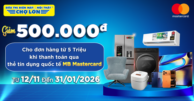- Ưu đãi dành cho khách hàng chủ chủ thẻ quốc tế MB MASTERCARD khi mua sắm và thanh toán tại hệ thống Siêu Thị Điện Máy - Nội Thất Chợ Lớn trên toàn quốc và kênh bán trực tuyến.