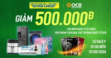 Giảm Ngay 500.000đ Cùng Thẻ Tín Dụng OCB. Áp Dụng Cho Đơn Hàng Có Giá Trị Từ 10 Triệu Đồng